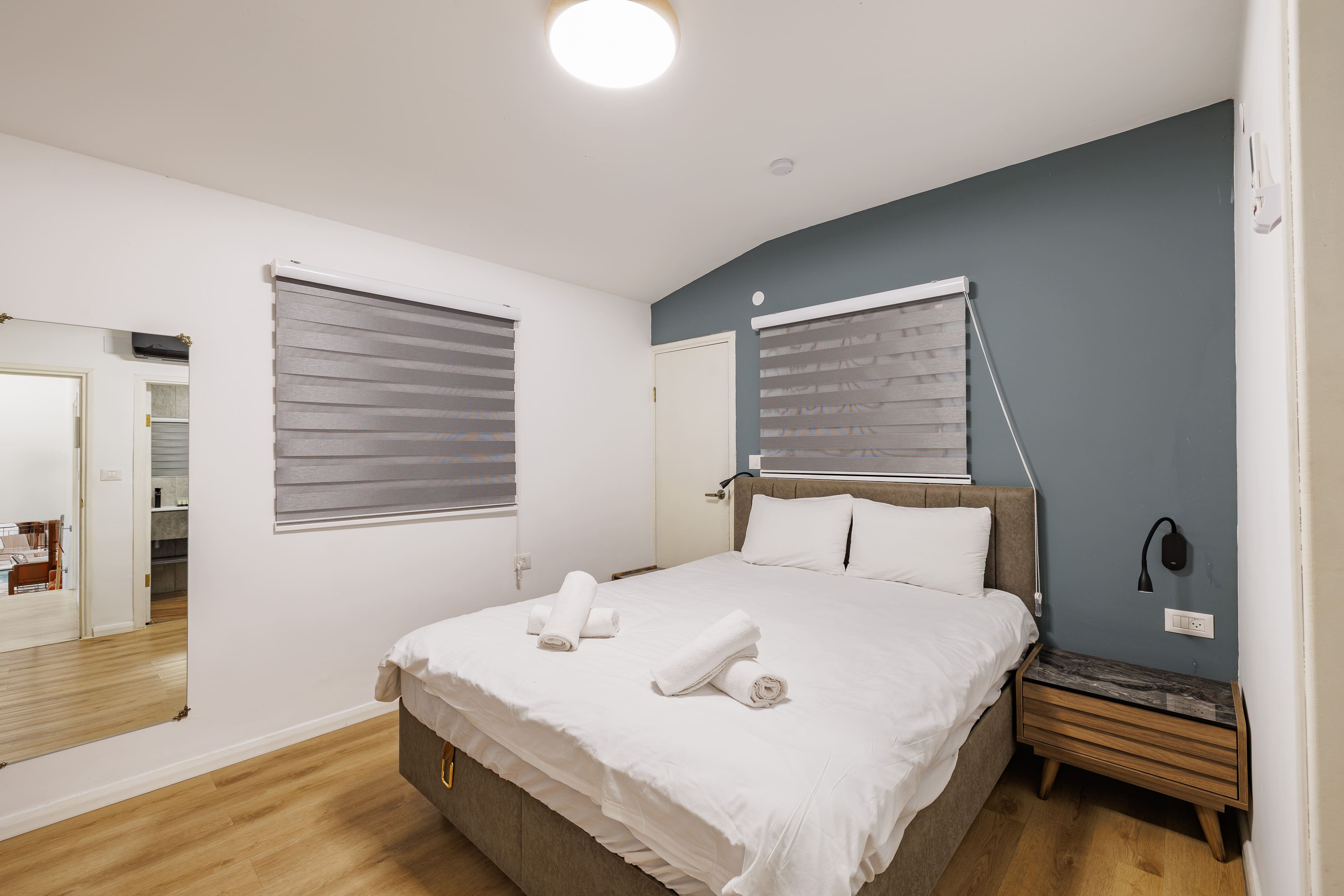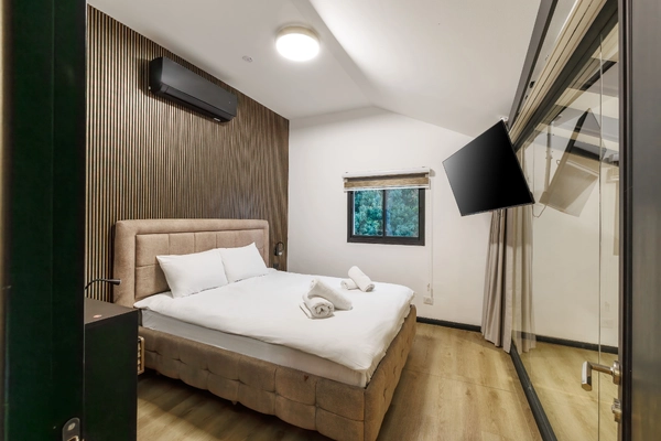 Wi-Fi и кабельное ТВ. Стоянка у входа. Мамад (защищённая комната). Качественное постельное бельё, халаты, мягкие полотенца.