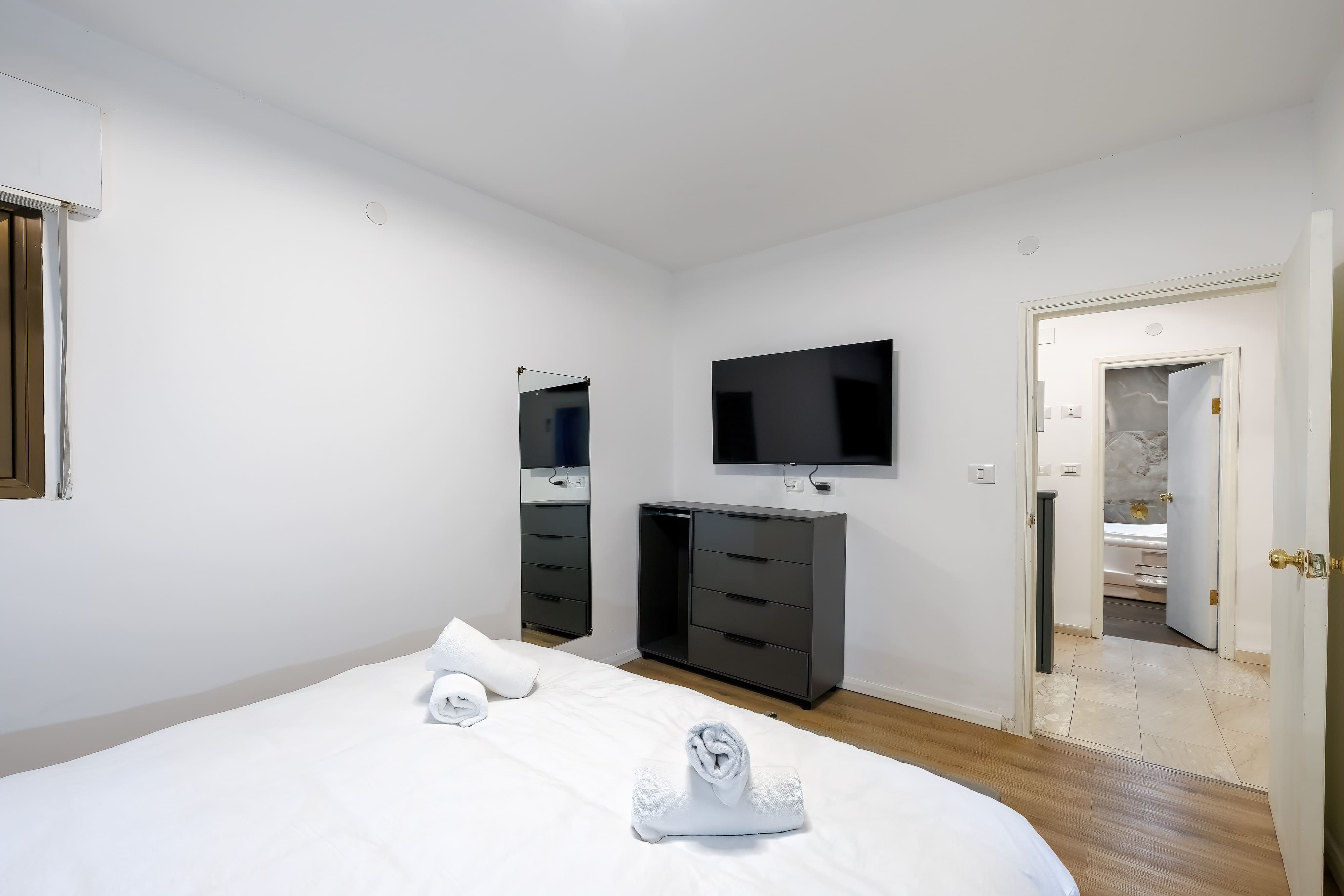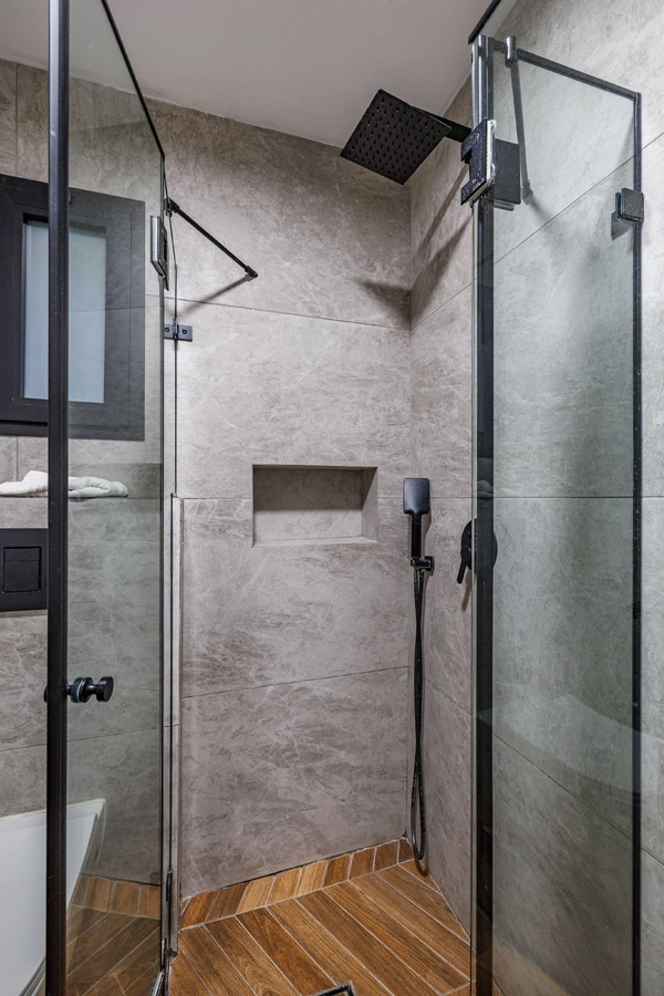 3 спальни, каждая с индивидуальной душевой и туалетом. Общая ванная комната с большим умывальником, душевой и джакузи на двоих.